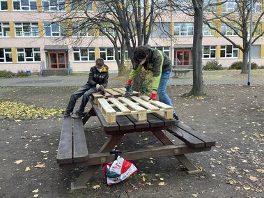 Unter der Leitfrage: Wie kann Klimaschutz am GDJ diskutiert, ausprobiert, gestaltet und gelebt werden - sind wir gemeinsam mit Lehrkräften, Schülerinnen und Schülern sowie Eltern ins Gespräch gekommen. Dank toller Expertinnen und Experten gab es einen intensiven Austausch mit vielfältigen Methoden und Projektideen und sogar bereits ersten Ergebnissen: neue Sitz- und Pflanzmöglichkeiten sind (trotz Starkregen) auf dem Schulhof entstanden und das Energieteam des GDJ hat sich gegründet und wird in den kommenden Wochen die Schulgemeinschaft dabei unterstützen, mehr Energie im Schulalltag zu sparen - und das ist gar nicht so schwer ;)