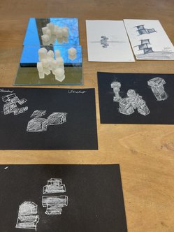 In der Klassenstufe 7 steht das Skizzieren und Anfertigen von Studien eine große Rolle. Neben all den Zeichnungen entstehen fotografische Etüden.
